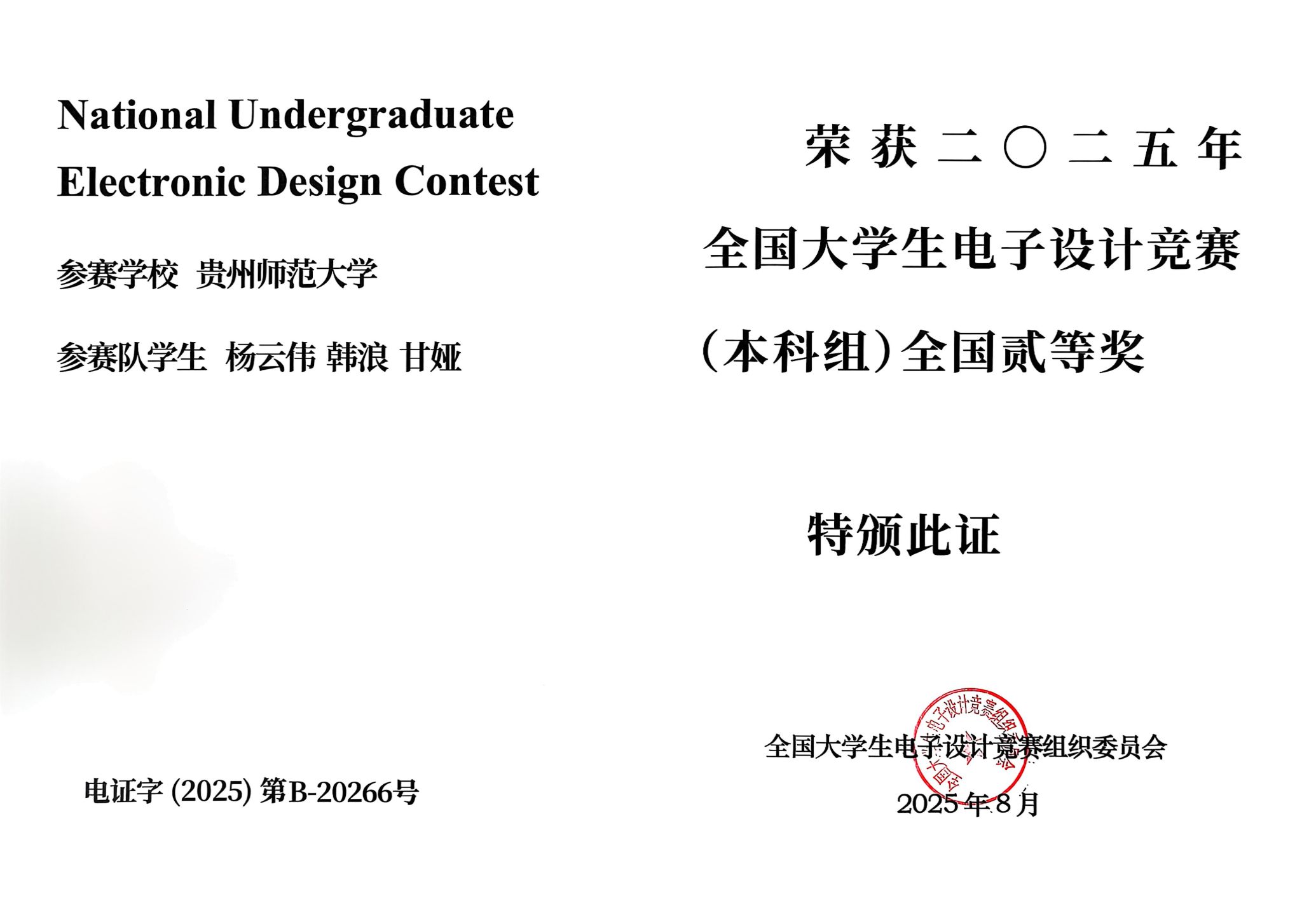 近日,2025年TI杯全国大学生电子设计竞赛全国总决赛在大连理工大学落下帷幕。我校物理与电子科学学院刘雪飞、李境达、周仕友、创新创业学院黄松指导的卢颂草学生团队、杨云伟学生团队,经过综合测评、复测环节的激烈角逐,荣获2项全国总决赛二等奖,取得了学校在该项赛事上的历史最好成绩,充分展现了学校师生积极进取的精神风貌,也为学校赢得了荣誉。